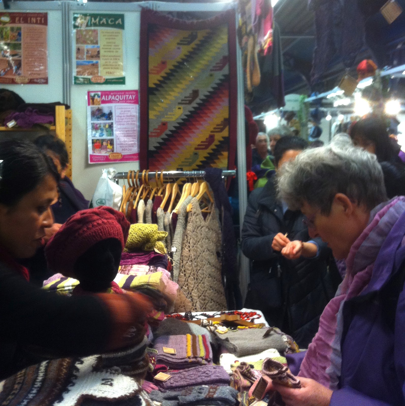 | Un stand qui nous transporte au Pérou grâce à son chocolat et ses textiles colorés aux motifs géométriques. |